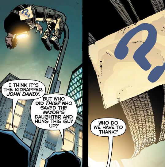 While I’m happy to see his return the lack of elaboration in the issue has me worried a little bit. In the New 52, The Question was one of the Trinity of Sin along with the Phantom Stranger and Pandora. It hasn’t been made clear what his sin was but he was punished by the Council of Wizards to be always questioning his identity and they removed his face. Yes, you read that right, wizards. Our intrepid faceless crime-fighter may have magical powers although I hope he doesn’t. I was really hoping for a return to his original objectivist ways as was intended by his creator Steve Ditko. I would have even been happy with his 1980s zen outlook from the Denny O’Neil run on his comic. There is a glimmer of hope though. In this incarnation, it was briefly alluded to that he may be written as his Justice League Unlimited animated counterpart. The conspiracy-minded detective who can see commonalities that even the great Batman can’t.