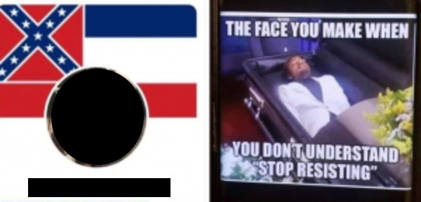 Anyway, the meme they posted is a picture of a black man in a coffin that has the caption “The face you make when you don’t understand ‘Stop resisting.’” You can see the meme below with an interesting part of their profile photo.